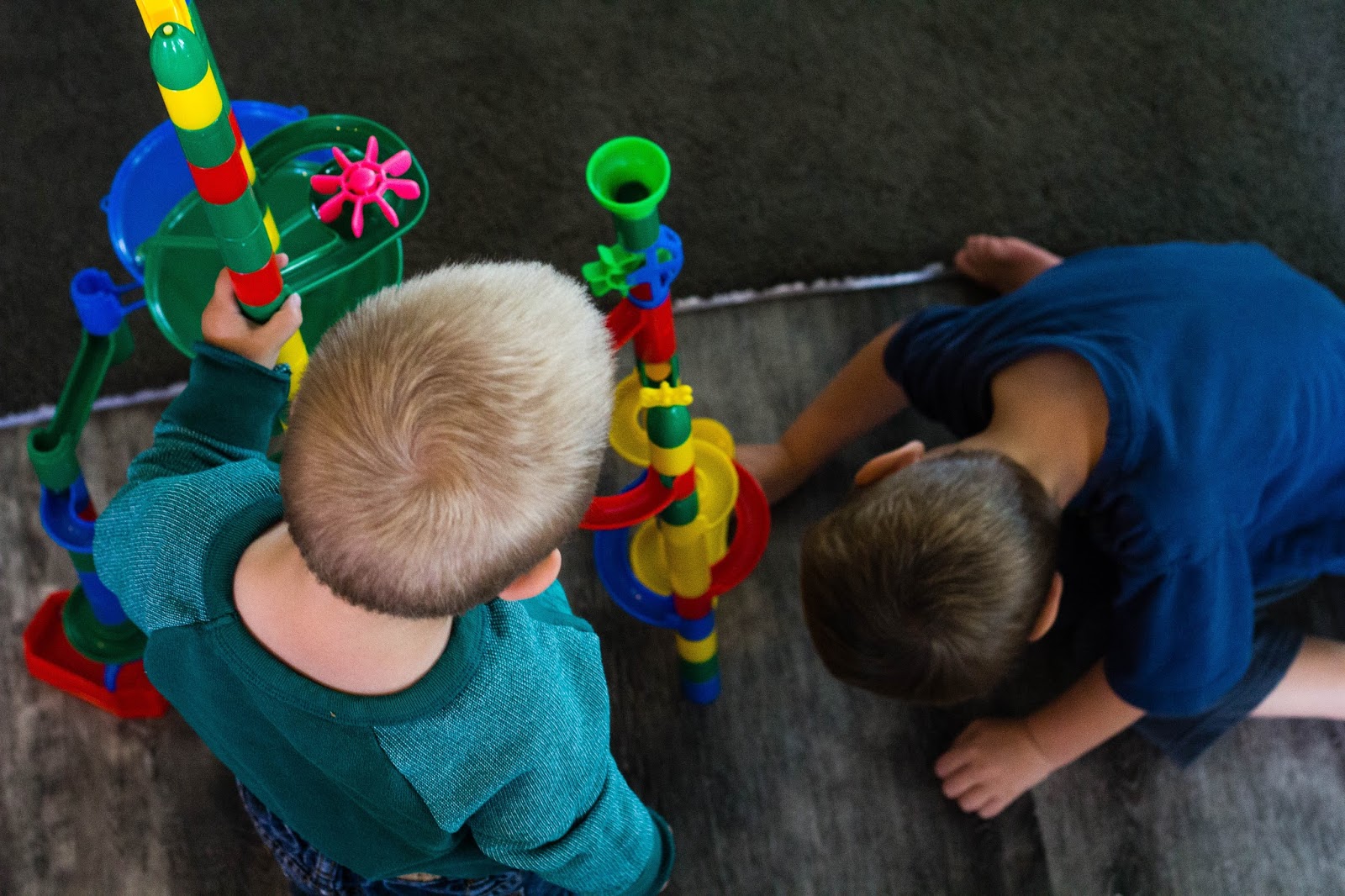 Ashton has been miserable for the last three days. He has a bad cough and just doesn't feel well. The only thing that has brought a smile to his face is doing marble runs together. I think Nate was shocked to not hear him crying and came looking and found he and I on the floor putting together the marble run. I think his daddy was impressed that I had helped calm the baby. This morning while I was cleaning the kitchen he was whining after me. I told Sierra go get the marble run and in a few minutes he forgot his troubles again.
